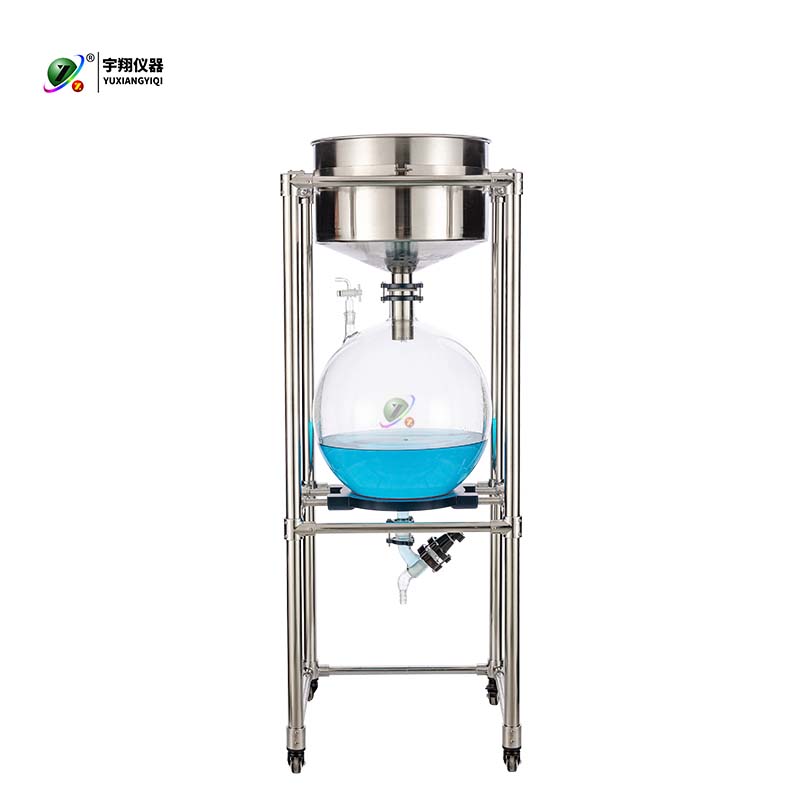ZF-5L真空抽濾器:框架式主體、304不銹鋼漏斗、玻璃放料閥門。
